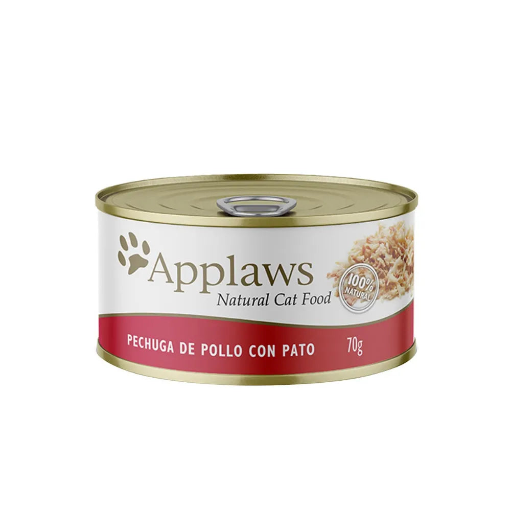 - 70% Pechuga de Pollo con Pato – Nos enfocamos estrictamente en utilizar los mejores cortes de la carne y de producir la alimentación.Applaws siguiendo los estándares para la elaboración de comida humana pero para sus gatos.