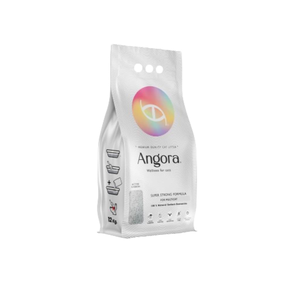 La arena sanitaria para gatos Angora, es una arena súper aglutinante que elimina los olores en su totalidad gracias a su fórmula con carbón activado y de aroma neutro.