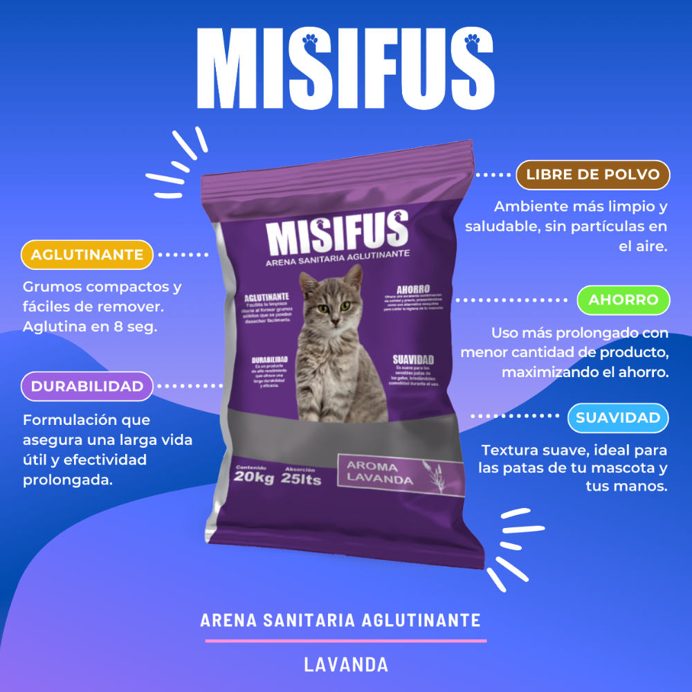 Arena Aglutinante Misifus Aroma Lavanda 20 Kg. Compra en Petvet.cl