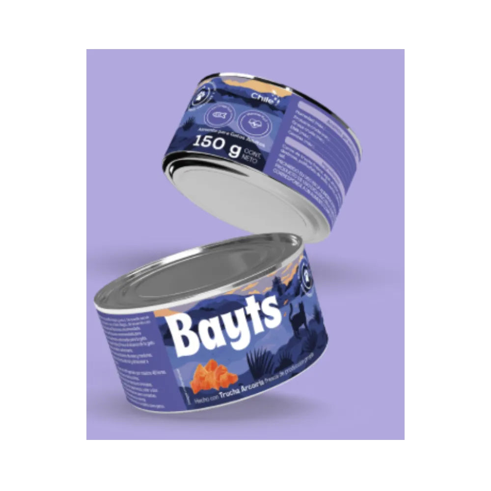Sorprende a tu gato con el sabor natural de la trucha del sur de Chile con Bayts Lata Húmeda Gato Trucha 150 gr, compra en petvet.cl