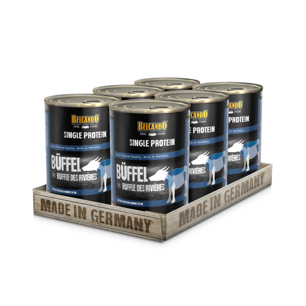 BELCANDO® Single Protein Bufalo es un sabroso alimento húmedo y calidad superpremium para perros de todas las edades. Formulado con ingredientes procedentes de la agricultura alemana controlada. No utilizan despiece, solamente piezas enteras que son cuidadosamente cocinadas.Se puede utilizar como alimentación permanente en caso de intolerancias alimentarias.