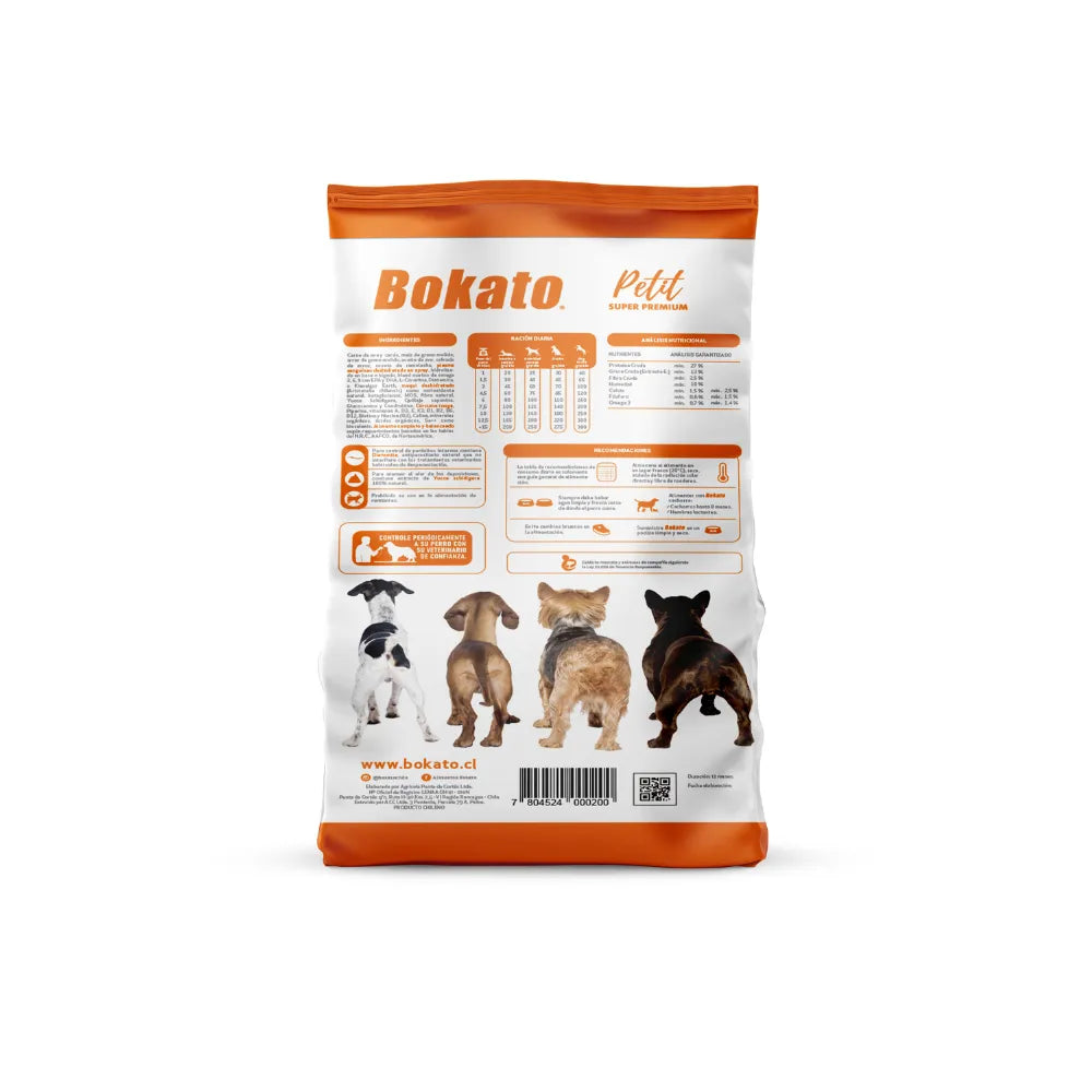 Bokato Petit 2,5 Kges un alimento completo y balanceado diseñado especialmente para perros adultos de razas pequeñas. Su fórmula aporta proteínas de calidad, energía concentrada y croquetas adaptadas al tamaño de su mandíbula, favoreciendo una nutrición óptima y fácil masticación.