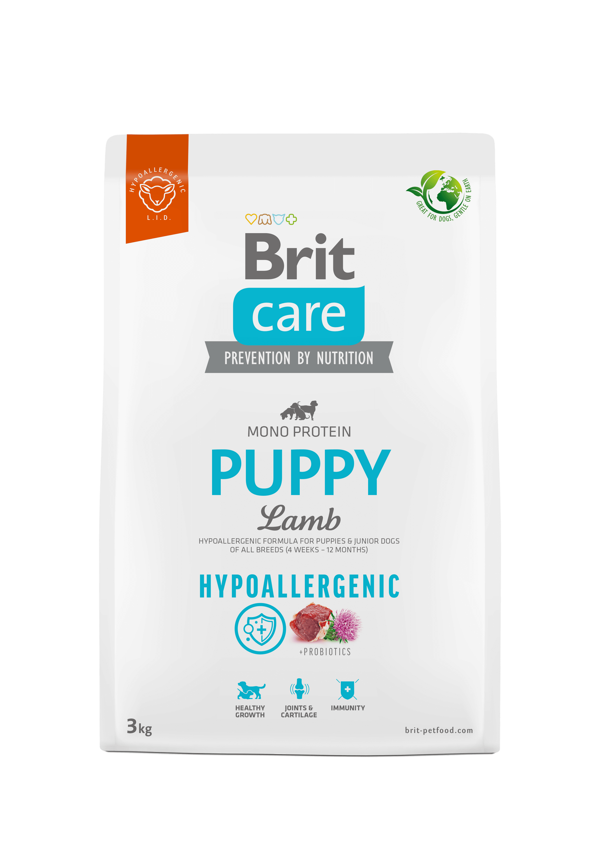 Brit Care Puppy Lamb Hypoallergenic es un alimento hipoalergénico para cachorros de todas las razas (desde 4 semanas a 12 meses). Formulado con un alto contenido de proteínas, grasas y nutrientes esenciales para ayudar al correcto desarrollo. Los prebióticos con inulina ayudan al sistema inmunológico y la flora intestinal. Con condoprotectores para cuidar las articulaciones. Altos niveles de Omega 3.
