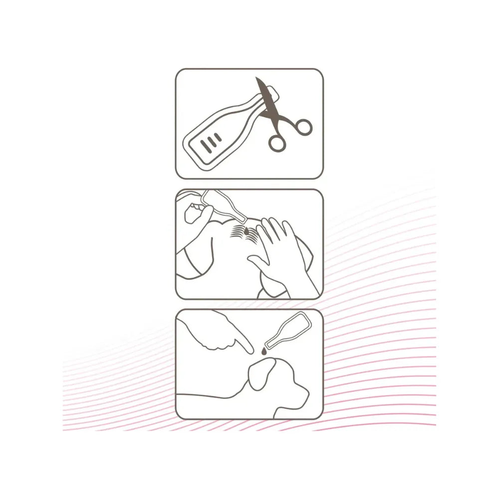 Aplicar el contenido de una pipeta en la piel de la nuca del perro, una vez por semana. No bañar al perro en las 24 horas posteriores a la aplicación.