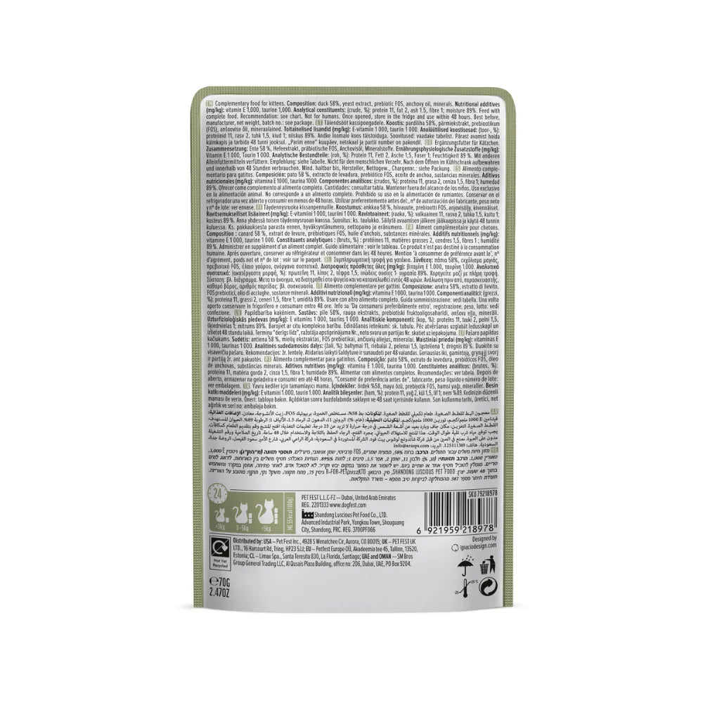 El delicado paté de filete de pato premium está especialmente elaborado para gatitos con una receta única y presenta una textura delicada. Este producto de alta calidad está diseñado con esmero para las mascotas más pequeñas. Su textura suave es fácil de digerir, especialmente importante para gatitos con estómagos sensibles. Es perfecto como premio, complemento a su dieta principal o como plato único.