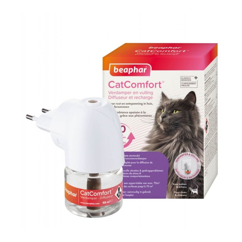CatComfort Excellence Starter Kit 48 ml es un difusor eléctrico con repuesto incluido, diseñado para reducir el estrés y la ansiedad en gatos. Su fórmula combina feromonas sintéticas felinas que transmiten calma, ayudando a que los gatos se adapten mejor a cambios en su entorno y disminuyan comportamientos indeseados como marcaje con orina, arañazos o maullidos excesivos.