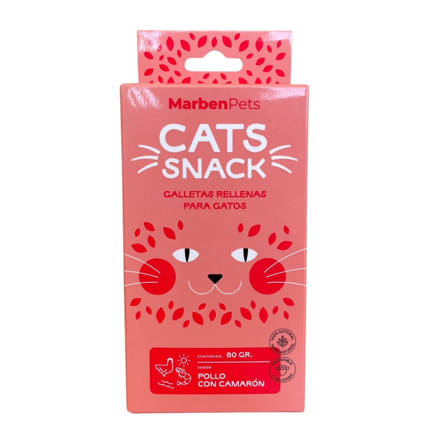 Cats Snack relleno sabor Pollo Camarón son galletas rellenas que le otorgan al producto una excelente palatabilidad.
