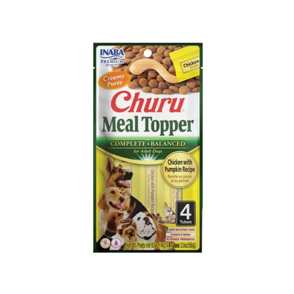 Churu Meal Topper Dog Chicken Pumpkin es un complemento cremoso elaborado con pollo real y zapallo, ideal para agregar directamente sobre el alimento seco. Su textura suave y sabor natural ayudan a mejorar la palatabilidad, estimular el apetito y apoyar una digestión más equilibrada gracias a la fibra del zapallo.