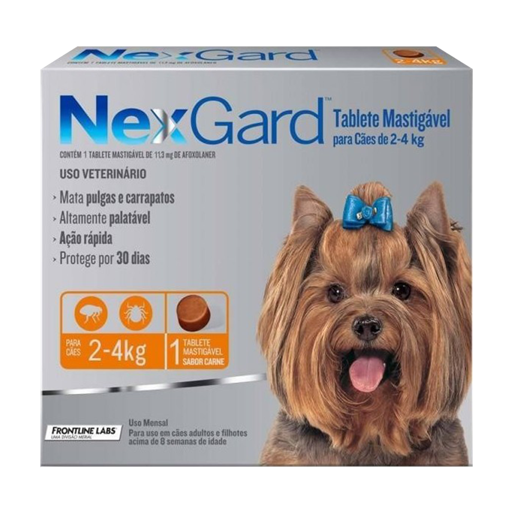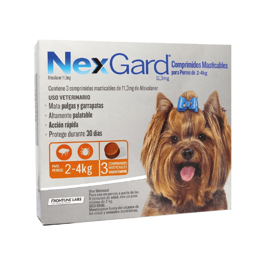 Nexgard es un antiparasitarioexternomasticable con sabor a carne, queprotege a los perros frente a pulgas y garrapatas. Puede utilizarse en caninos con alteraciones en la piel y como parte de la estrategia de tratamiento para el control de la Dermatitis Alérgica por Pulgas - D.A.P.
