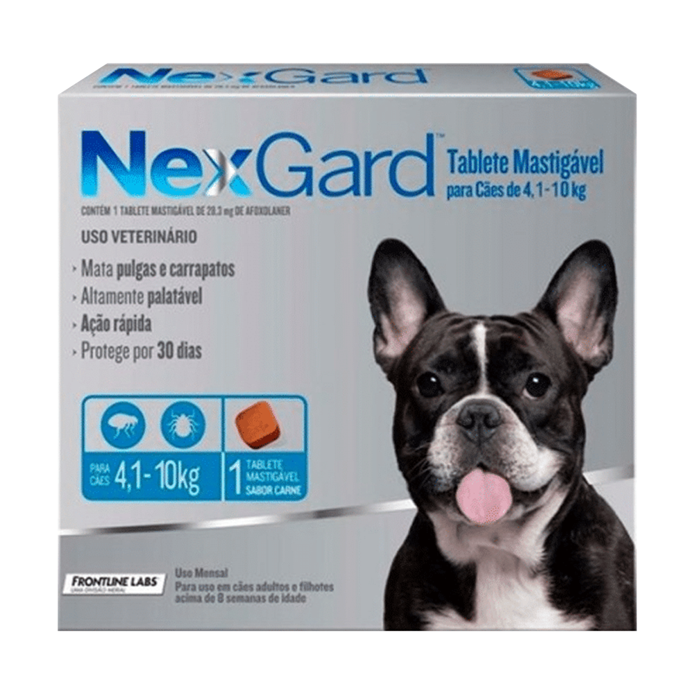 Nexgard es un antiparasitarioexternomasticable con sabor a carne, queprotege a los perros frente a pulgas y garrapatas. Puede utilizarse en caninos con alteraciones en la piel y como parte de la estrategia de tratamiento para el control de la Dermatitis Alérgica por Pulgas - D.A.P.