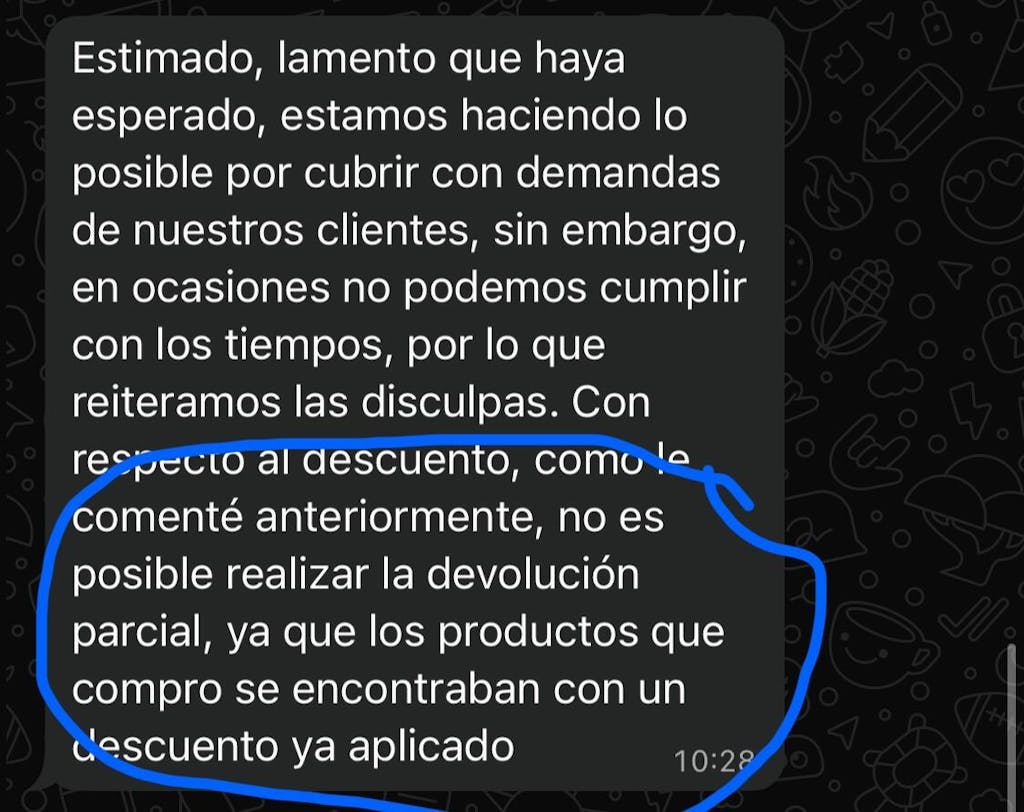 No se aceptarán devoluciones por retracto de la compra sin alguno de los motivos mencionados anteriormente