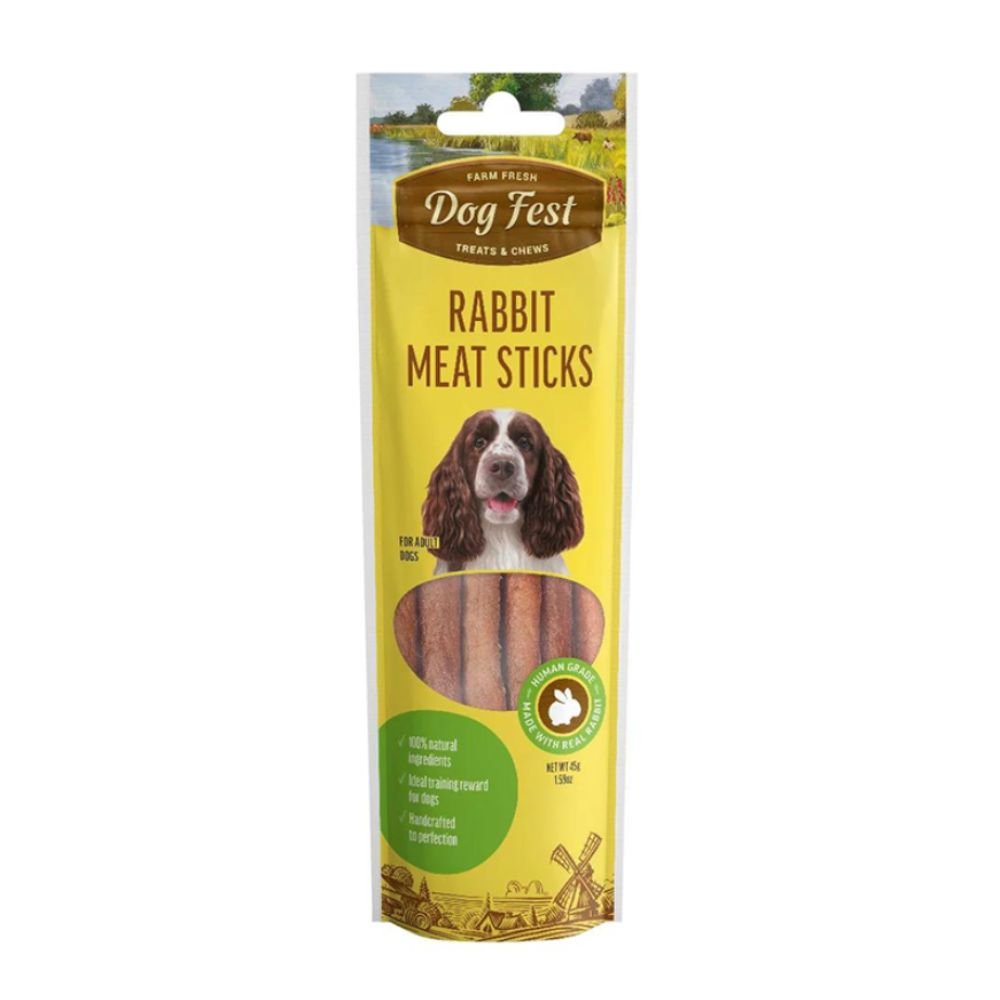Dog Fest Sticks de Carne de Conejo 45 gr ofrece una deliciosa y saludable opción de snack para tu perro. Con un rico sabor natural, estos palitos de carne de conejo son perfectos como golosinas para perros. Son fáciles de cortar, permitiéndote decidir el tamaño de la porción.