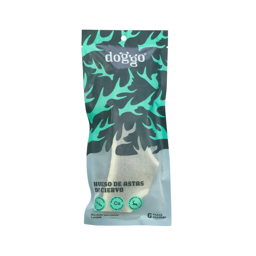 El Hueso Asta de Ciervo Grande de Doggo es un snack perfecto para tu perro. Las astas de ciervo para caninos se han transformado en una opción perfecta para entregarle a tu mascota un snack sano, rico, divertido y natural. La asta de ciervo es un fragmento de la cornamenta de estos animales, que se les caen de forma natural, el desmogue es una muda que ocurre una vez al año y para la obtención de este mordedor no se realiza ningún tipo de daño sobre los ciervos, sino que se recogen los cuernos que se les caen. Snack 100% natural, sin productos químicos, que brinda variadas ventajas para los perros. Una de sus tantas eficacias, es su duración, ya que son muy resistentes y tu mascota podrá disfrutar de ellos durante mucho más tiempo que los snacks tradicionales.