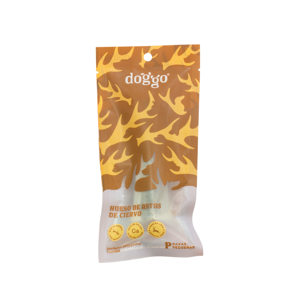 El Hueso Asta de Ciervo pequeño de Doggo es un snack perfecto para tu perro. Las astas de ciervo para caninos se han transformado en una opción perfecta para entregarle a tu mascota un snack sano, rico, divertido y natural. La asta de ciervo es un fragmento de la cornamenta de estos animales, que se les caen de forma natural, el desmogue es una muda que ocurre una vez al año y para la obtención de este mordedor no se realiza ningún tipo de daño sobre los ciervos, sino que se recogen los cuernos que se les caen. Snack 100% natural, sin productos químicos, que brinda variadas ventajas para los perros. Una de sus tantas eficacias, es su duración, ya que son muy resistentes y tu mascota podrá disfrutar de ellos durante mucho más tiempo que los snacks tradicionales.