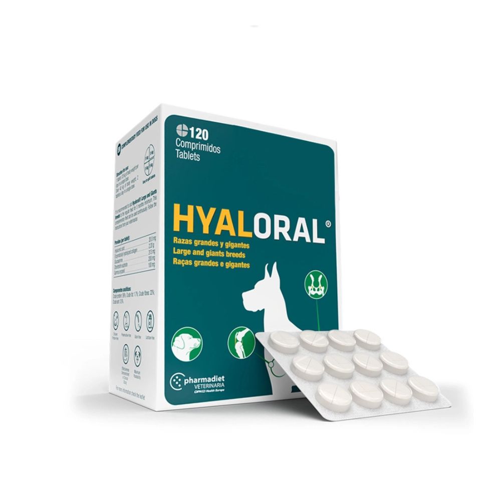 Cuida las articulaciones de tu perro con Hyaloral Razas Grandes y Gigantes 120 Comprimidos. Compra en Petvet.cl