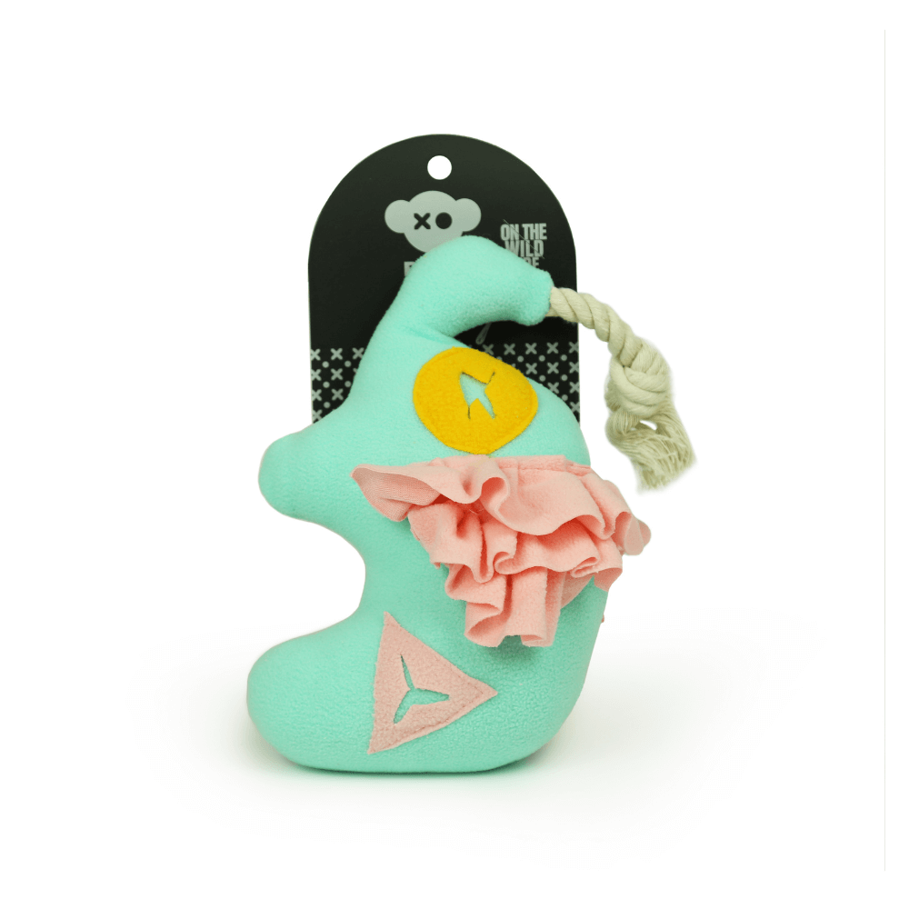 . Cuenta con un chirriador en el interior y partes texturizadas que hacen que el tiempo de juego sea aún más emocionante.Y lo mejor de todo es que puede meter la golosina favorita de tu amigo en el interior para que la persiga, la agarre y la roa para conseguir su sabor. Ayuda a proporcionar el tan necesario ejercicio y estimulación mental con el juego, ¡y también puedes lanzarlo y ver cómo tu amigo se va!