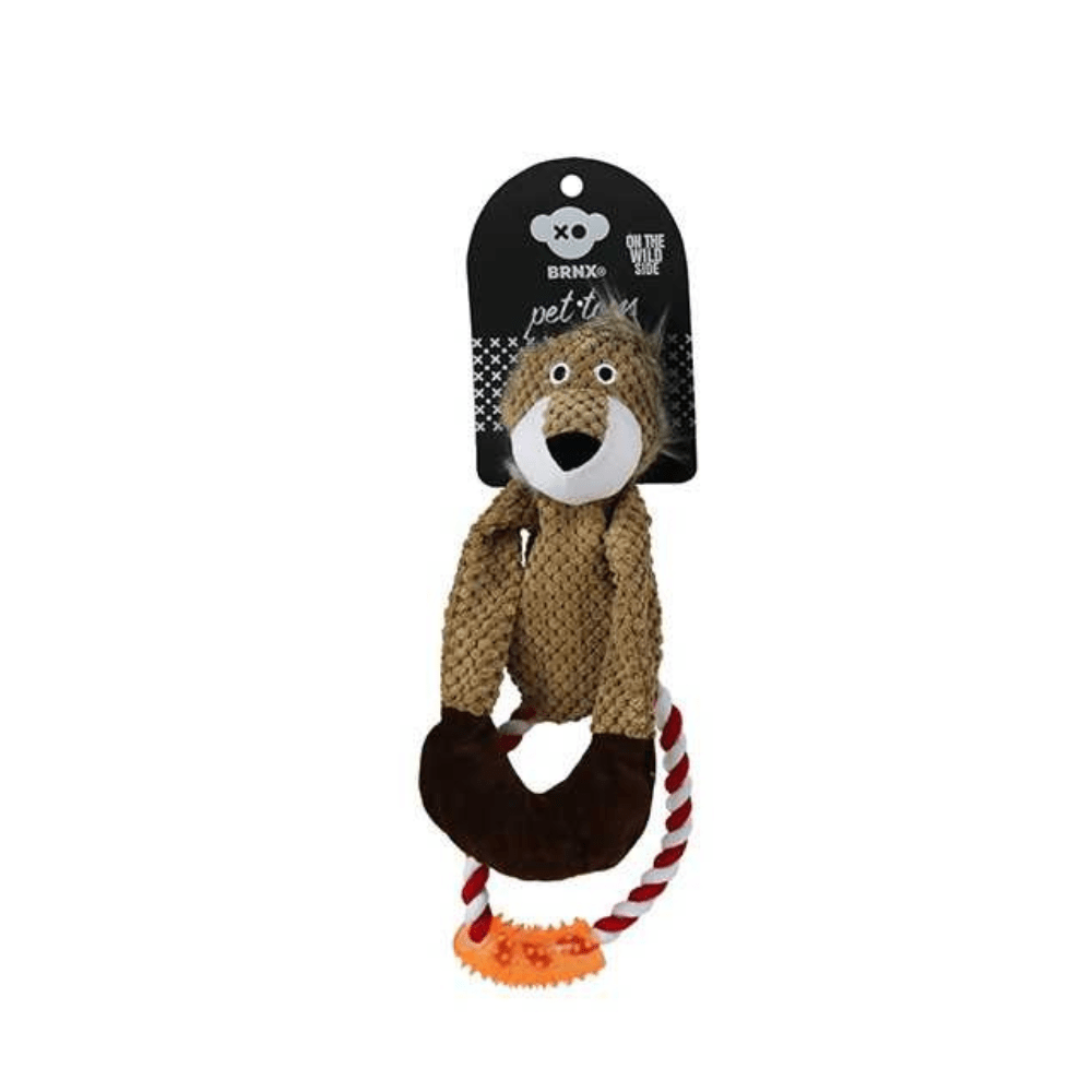 BRNXson juguetes resistentes e interactivos para tirar y sacudir que encantan a los perros. Cada juguete tiene cuerdas anudadas en el interior para una sensación realista, que se extienden fuera del juguete creando asas para tirar en ambos extremos.Este diseño único crea una cautivadora variedad de texturas y resistencia que los perros adoran, y contiene un chirriador para mayor diversión.