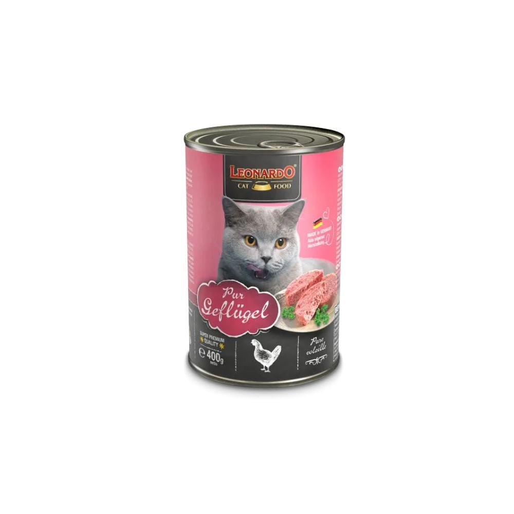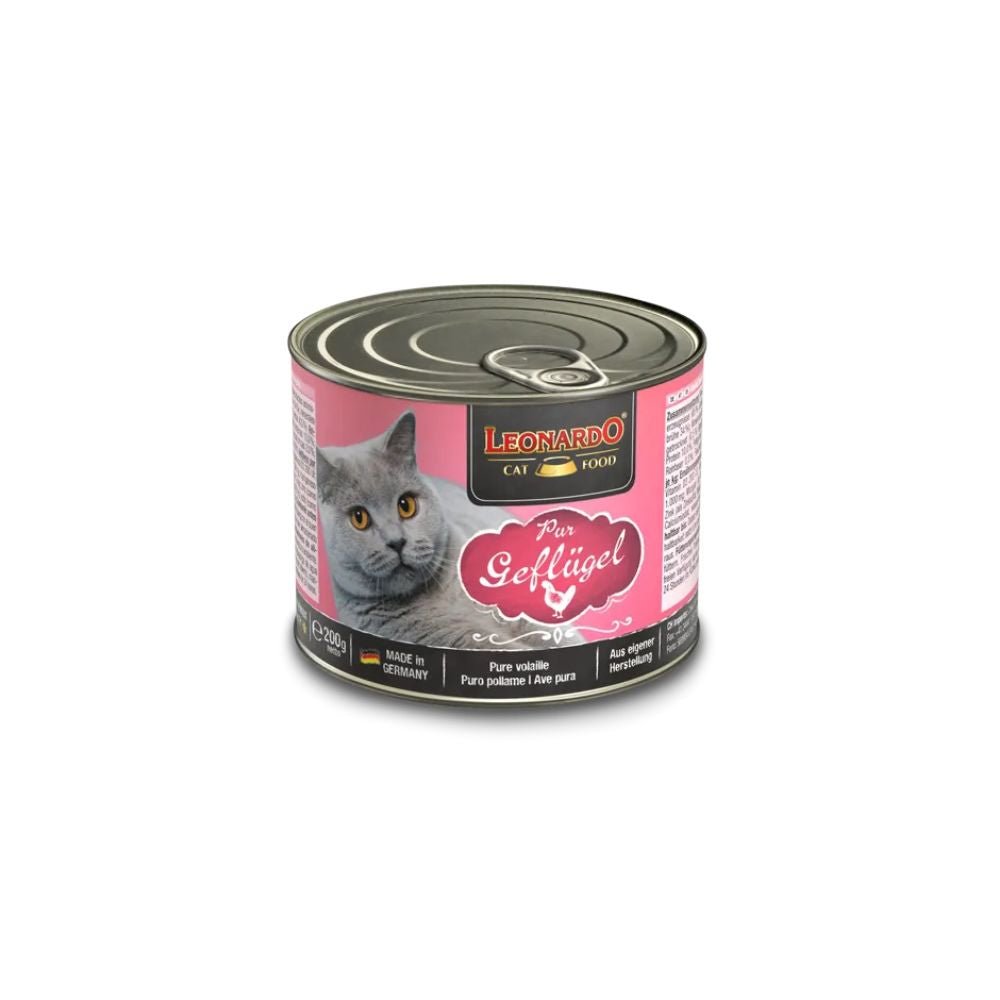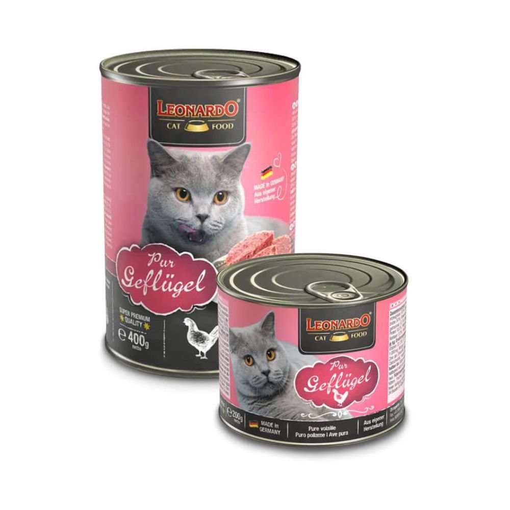 LEONARDO Quality Selection Leber es un alimento húmedo en lata indicado para gatos adultos rico en pollo. En su fórmula solamente se utilizan productos cárnicos frescos. Gracias a la alta disponibilidad biológica y a la alta calidad de estos productos, su gato necesita una cantidad relativamente pequeña para satisfacer sus necesidades nutricionales diarias. Latas de 200 y 400 g.