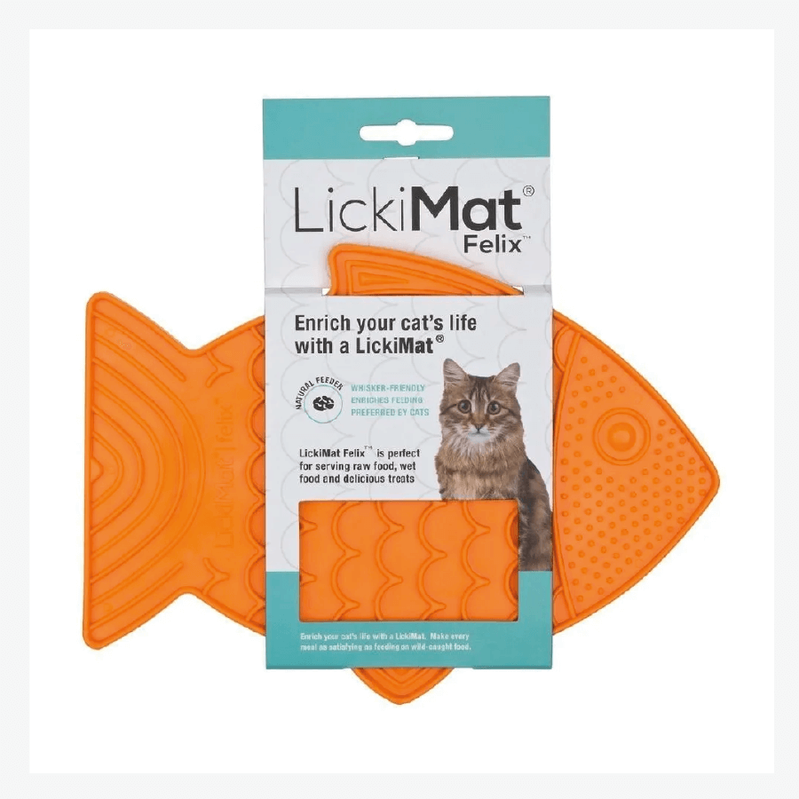 LickiMat Felix es comedero para gatos para alimentación lenta con forma de pez que ayuda a combatir el aburrimiento felino, reducir la ansiedad, comportamientos destructivos y disfrutar una experiencia de alimentación enriquecida al recoger los alimentos incrustados en la superficie texturada. Puedes usarlo con alimentos húmedos, golosinas en pasta como Churu o Creamy, y también dar su comida BARF.
