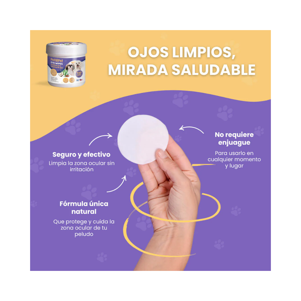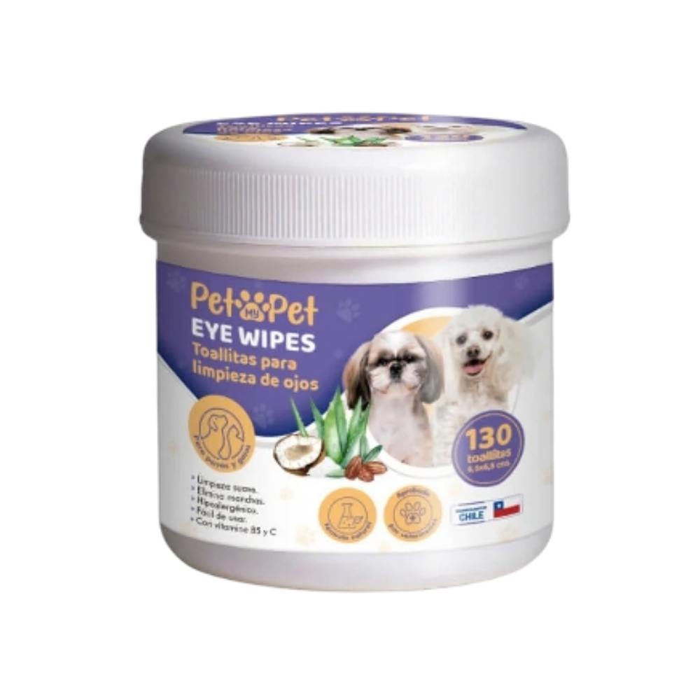 Permite realizar una limpieza suave y práctica del área ocular, ayudando a remover secreciones o residuos del contorno de los ojos como parte de la rutina de higiene de la mascota.