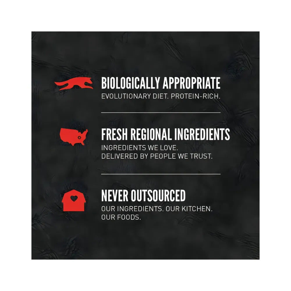 - Ingredientes principales:Pollo y pavo frescos criados en libertad, arenque, caballa, sardina, huevos frescos, lentejas y garbanzos