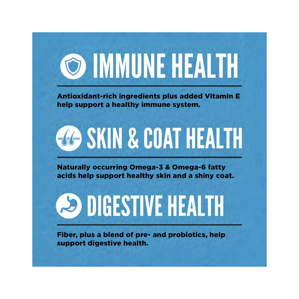 - Bajo en carbohidratos, sin granos, gluten ni subproductos