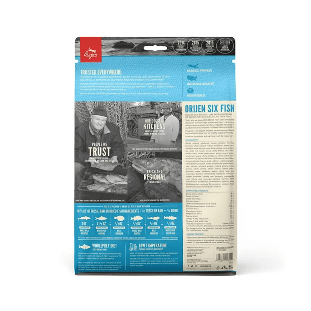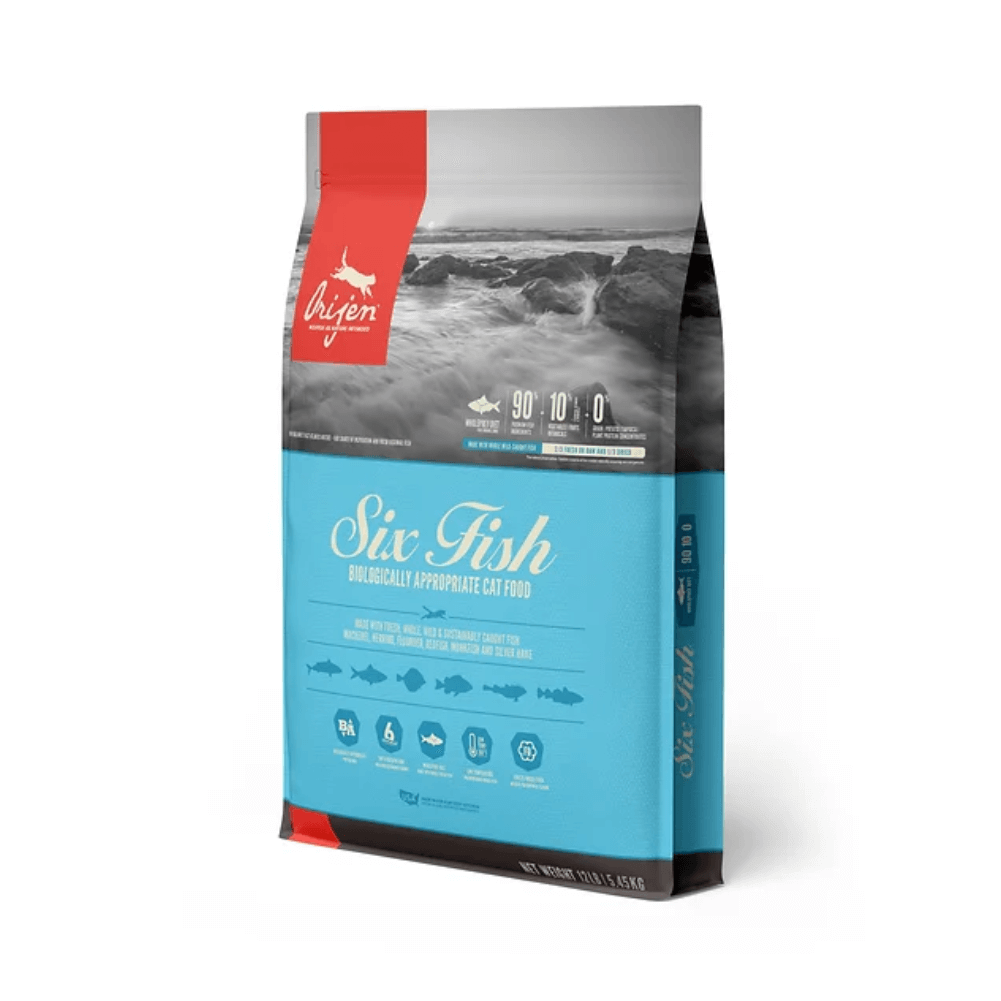 Orijen Six Fish Cates un alimento biológicamente apropiado indicado para gatos adultos que refuerza sus necesidades evolutivas y biológicas. Incluye proteínas de sardinas, caballa, merluza, rodaballo, pescado de roca y lenguado. Además incluye hígado de bacalao liofilizado que realza el sabor naturalmente, haciendo que este alimento sea deliciosamente sabroso, incluso para los gatos con paladares muy exigentes.