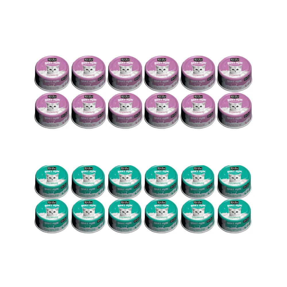 Pack 12 Kit Cat Goat Milk Gourmet Tuna & Crab + 12 Goat Milk Ckicken & Shrimp 70 Gr