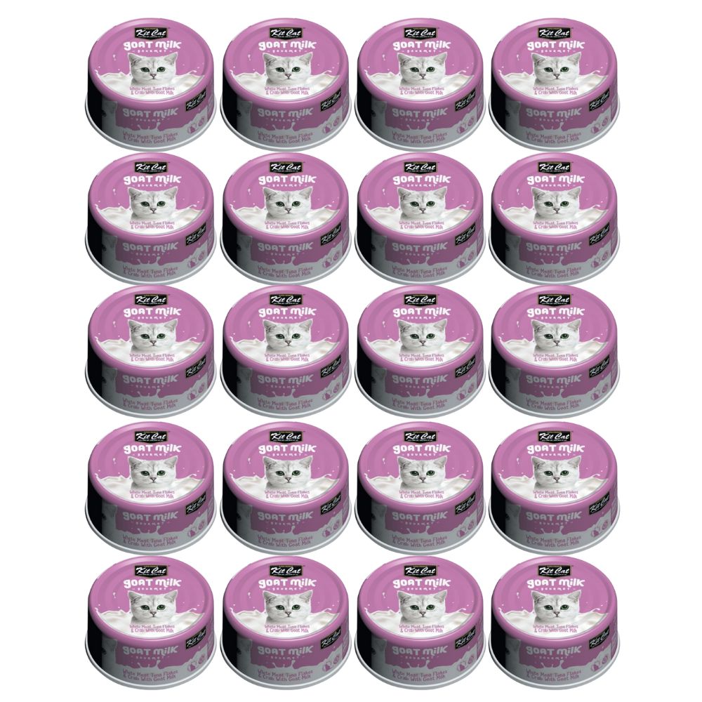 Pack contiene: 24 latas Kit Cat Goat Milk Gourmet Tuna & Crab 70Gr