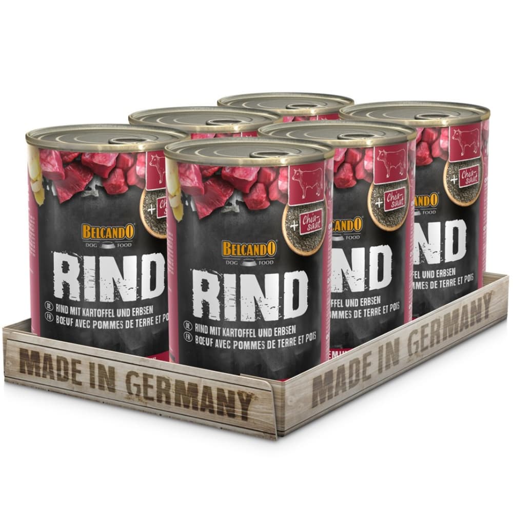 BELCANDO® Rind Beef Ternera con Patata y Guisantes es un sabroso alimento húmedo y calidad super premium para perros de todas las edades. Formulado con ingredientes procedentes de la agricultura alemana controlada. No utilizan despiece, solamente piezas enteras que son cuidadosamente cocinadas. Cada variedad se completa con ingredientes seleccionados y contiene valioso aceite de cardo, rico en ácidos grasos insaturados.