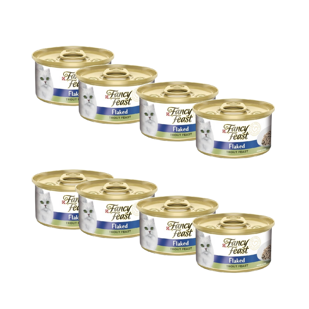 - 8 Latas Fancy Feast Lata Flaked Trucha 85 Gr