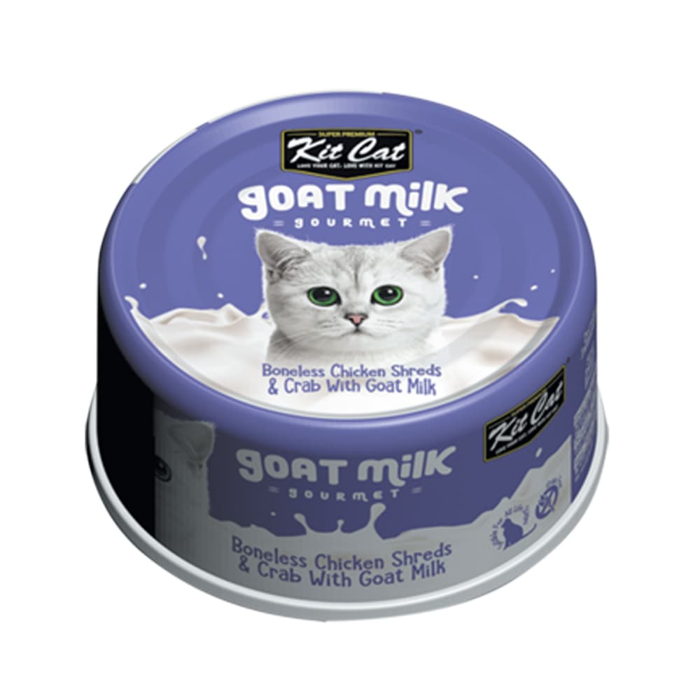 Pack contiene: 24 latas Kit Cat Goat Milk Gourmet Chicken & Crab