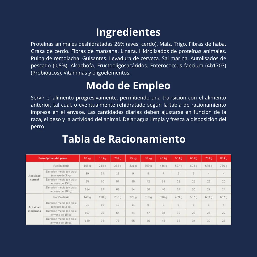 - Recomendación de uso: realizar una transición gradual durante 7 días, mezclando con el alimento anterior para evitar molestias digestivas.