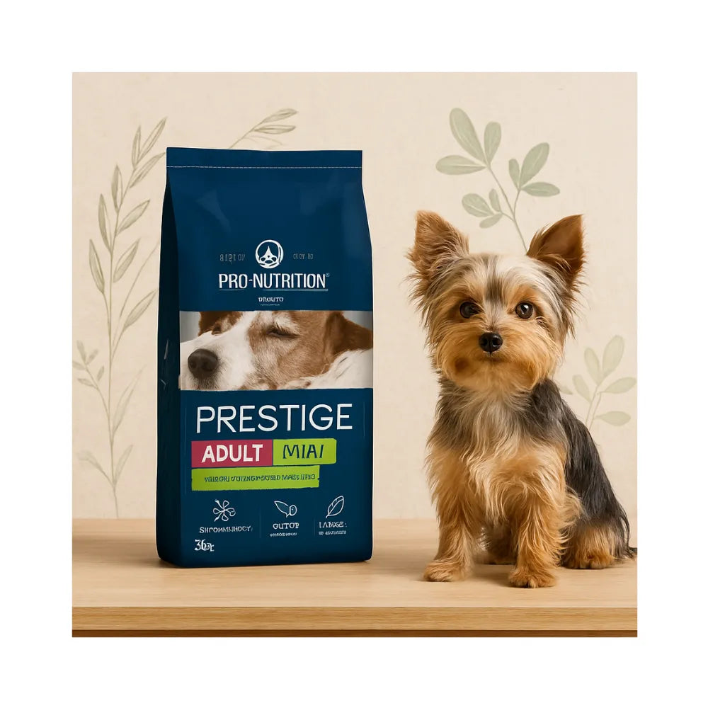 Prestige Perro Adulto Mini3Kg es un alimento seco completo, formulado especialmente para perros adultos de raza pequeña (menos de 10 kg). Su receta combina proteínas de alta calidad, probióticos y nutrientes esenciales que promueven una digestión saludable, una piel protegida y un pelaje brillante.