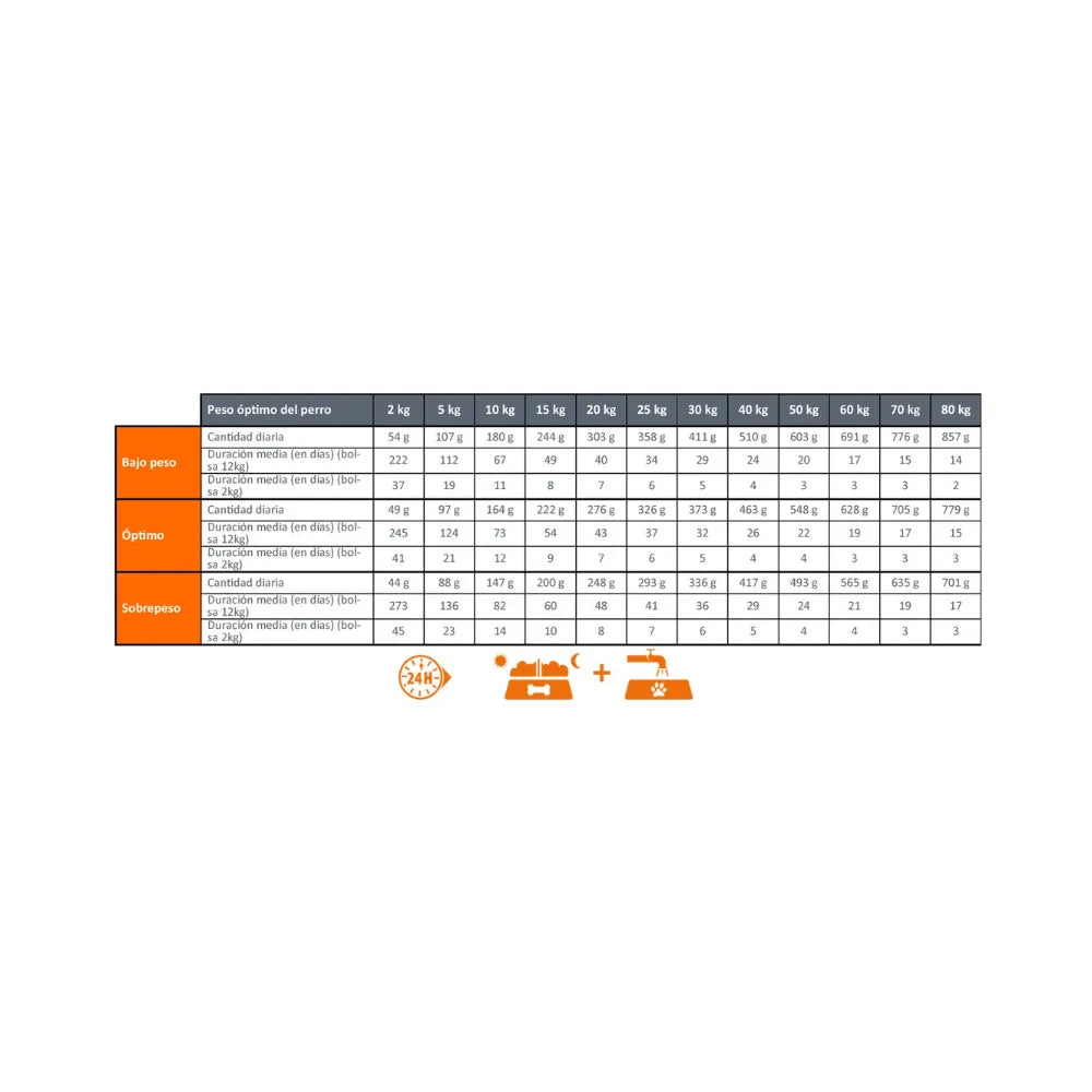 Administrar según peso y condición del perro, siguiendo la tabla del envase. Ajustar en función de su nivel de actividad. Siempre dejar agua fresca disponible.