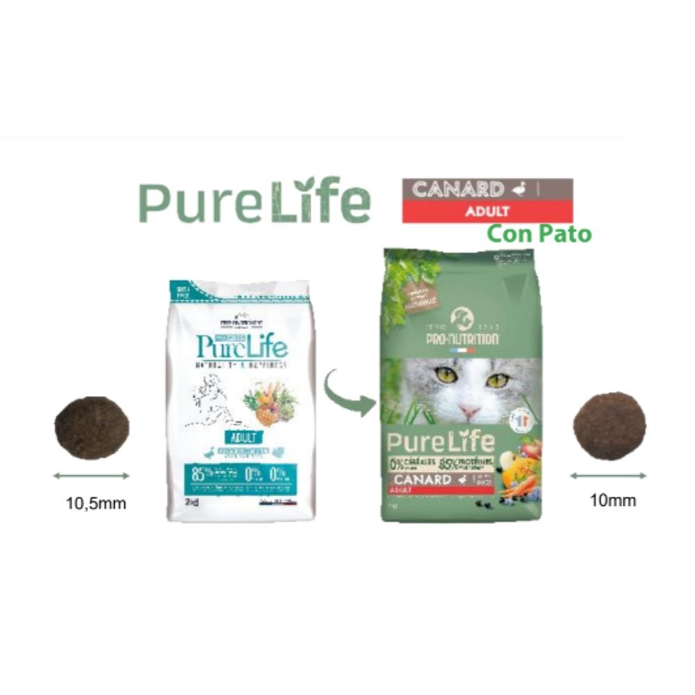 Pure Life Adult es un alimento recomendado para gatos adultos de todas las razas, a partir del año de edad aproximadamente. Con un gran sabor a pato y pavo, favorece una piel sana y un pelo sedoso gracias a la biotina, el zinc quelado y un equilibrio óptimo de ácidos grasos esenciales. La presencia de arándanos rojos y un muy buen equilibrio de minerales aseguran el confort urinario para una vida tranquila. Por último, estas croquetas garantizan el bienestar digestivo gracias a la presencia de fruta y a un contenido en fibra adecuado para limitar las bolas de pelo.