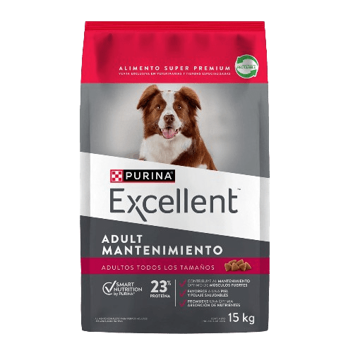 Purina Excellent Maintenance Perro Adulto 15 Kg es un alimento premium completo y balanceado para perros adultos de todas las razas. Su fórmula con proteínas de alta calidad y arroz como fuente de carbohidratos favorece la digestión, mantiene una condición corporal ideal y contribuye al bienestar general de tu mascota.
