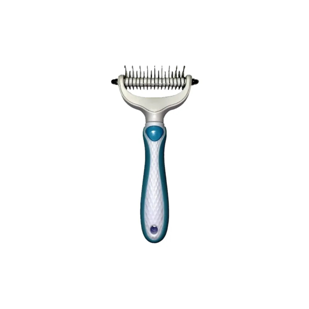 Accesorio de grooming para perros y gatos. Ayuda a eliminar motas y nudos, dejando el pelaje más ordenado y cómodo.