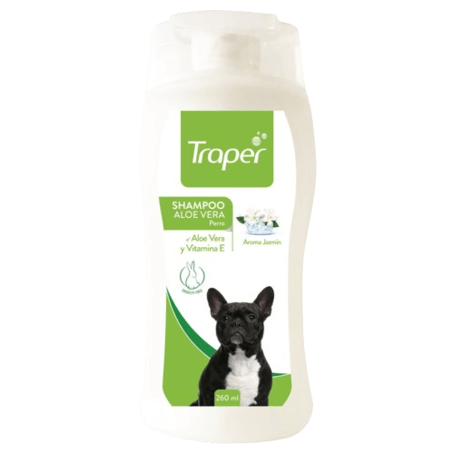Traper® Shampoo Aloe Vera para perro, cuida y protege la piel de tu peludo. Shampoo TRAPER con pH neutro, es ideal para perros de piel sensible. Gracias a las propiedades de Aloe Vera, acondiciona y humecta el pelaje de su mascota otorgándole además de un aroma limpio y fresco, una suavidad y brillo incomparable.
