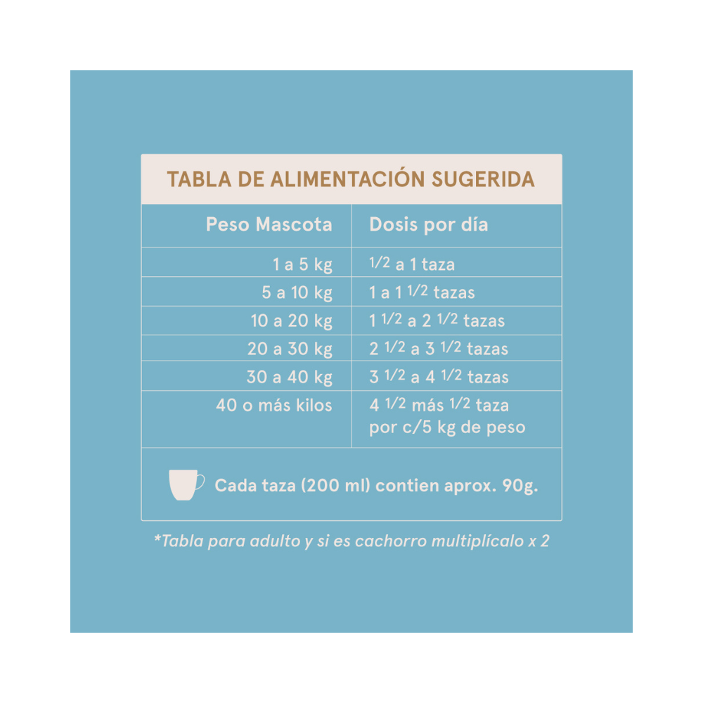 Servir en seco siguiendo la ración diaria recomendada en el envase. Ajustar las cantidades según peso, actividad y condición corporal del perro. Realizar transición gradual al cambiar desde otro alimento para evitar molestias digestivas.