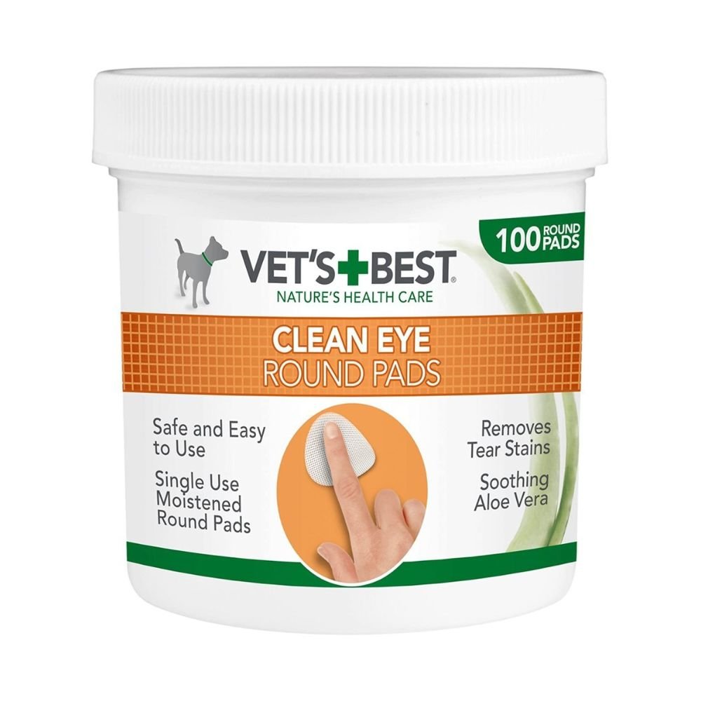 Vet's Best® Clean Eye Round Pads toallitas húmedas de un solo uso para limpieza de ojos, elimina suavemente y eficazmente en la sociedad y ayudan a disolver la secreción ocular, especialmente diseñadas para guiar por su propio tacto, a limpiar los ojos de tu mascota, seguro, rápido y fácil de usar para eliminar las manchas de lágrimas, contienen ingredientes seguros y naturales, como el aloe vera D-pantenol
