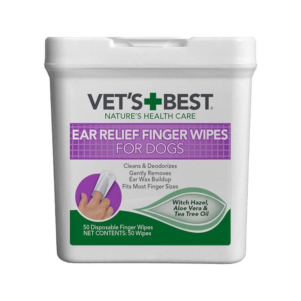 Vet's Best® Clean Ear son toallitas para los dedos para aliviar los oídos para perros y gatos. El uso regular ayudará a eliminar de forma segura y suave la acumulación de cera, la suciedad y la secreción que pueden causar olor.